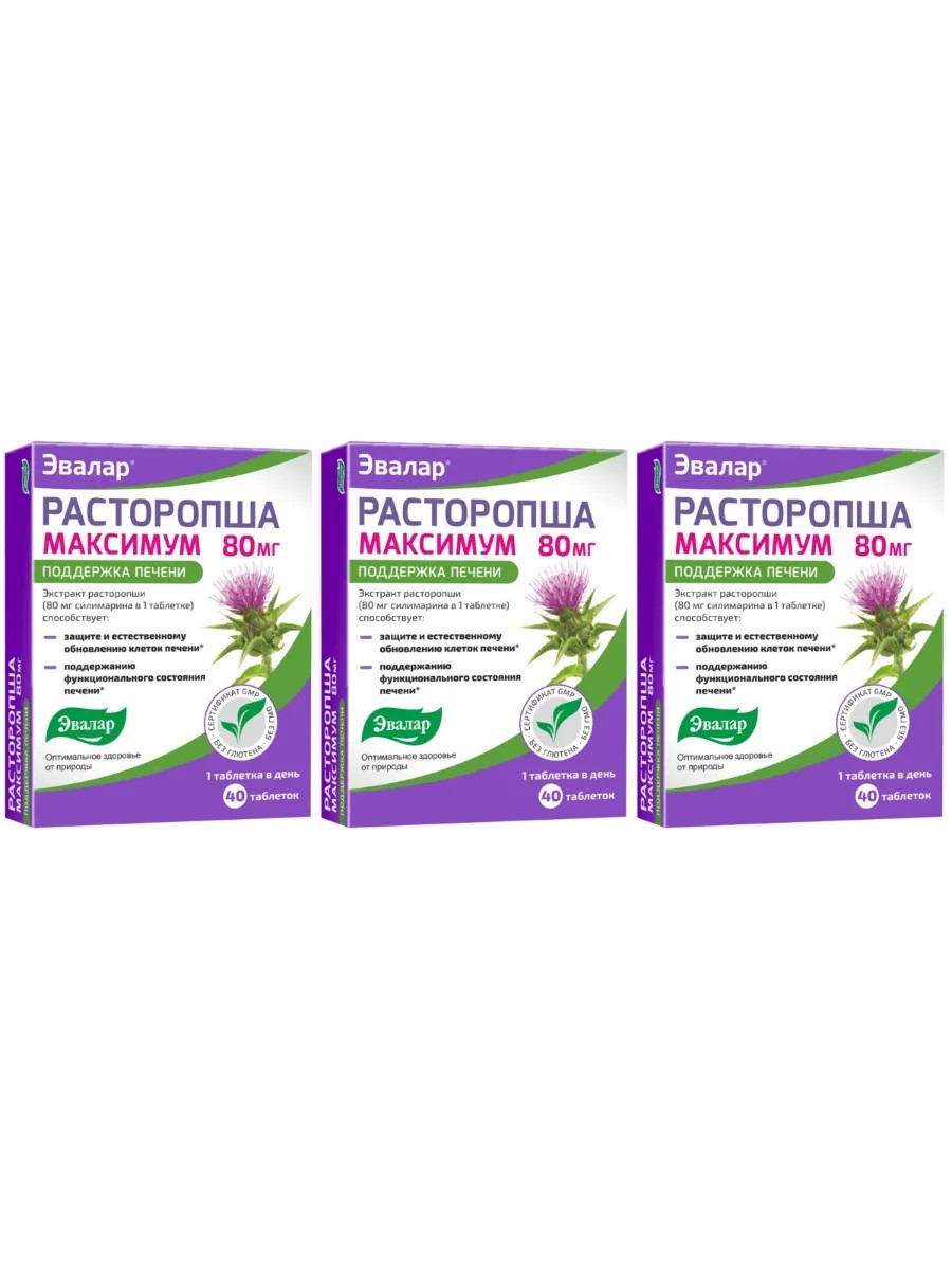 Эвалар Расторопша Максимум для печени, 40 таб (0,5г) х 3 уп