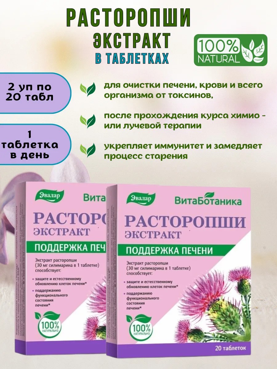 Эвалар Расторопша таблетки очистка печени от токсинов 2 уп по 20 шт
