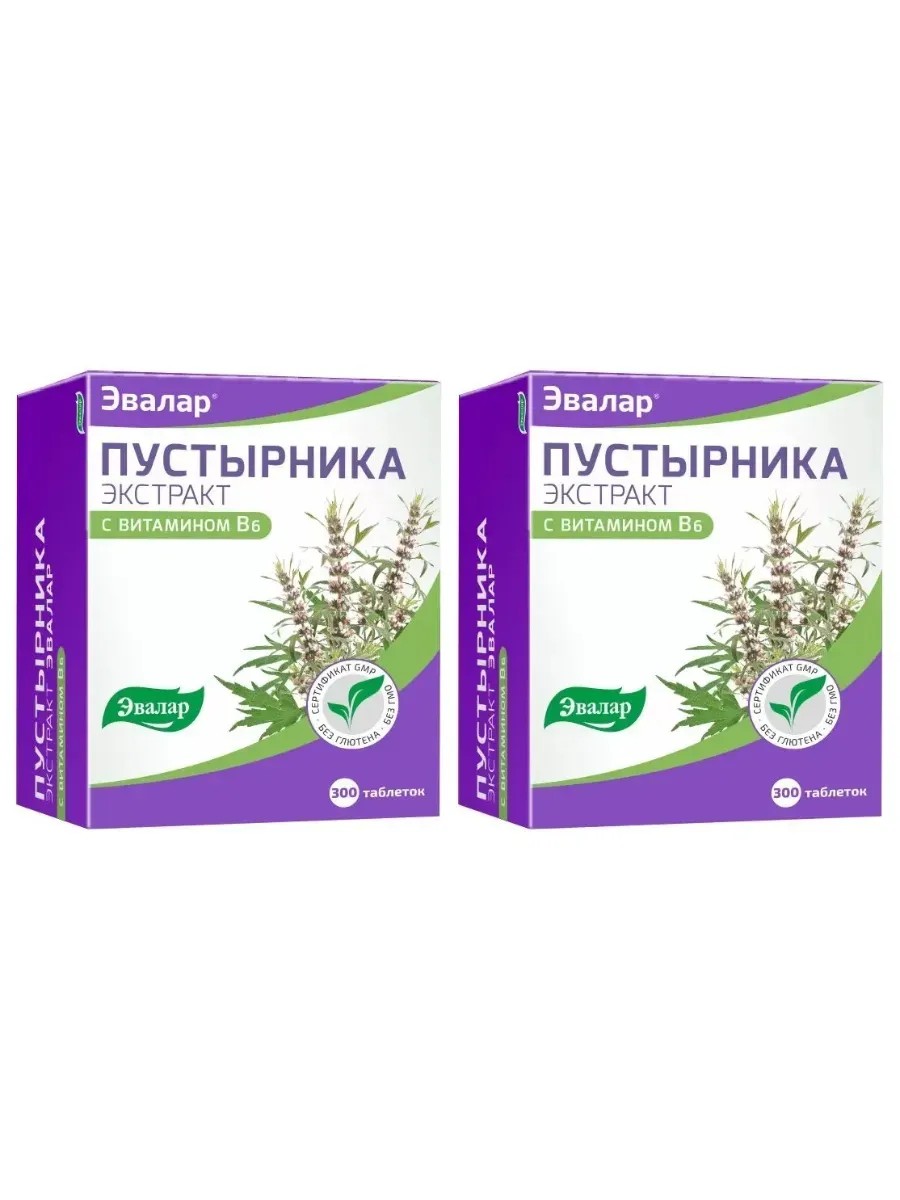Эвалар Экстракт пустырника с витамином B6, 300 таб (0,23г) х 2 уп