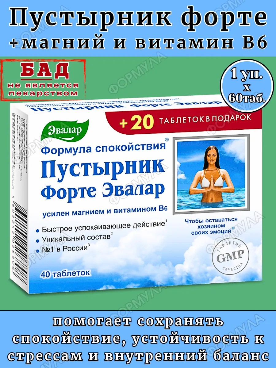 Эвалар Пустырник Форте с витамином В6 и Магнием 60таб