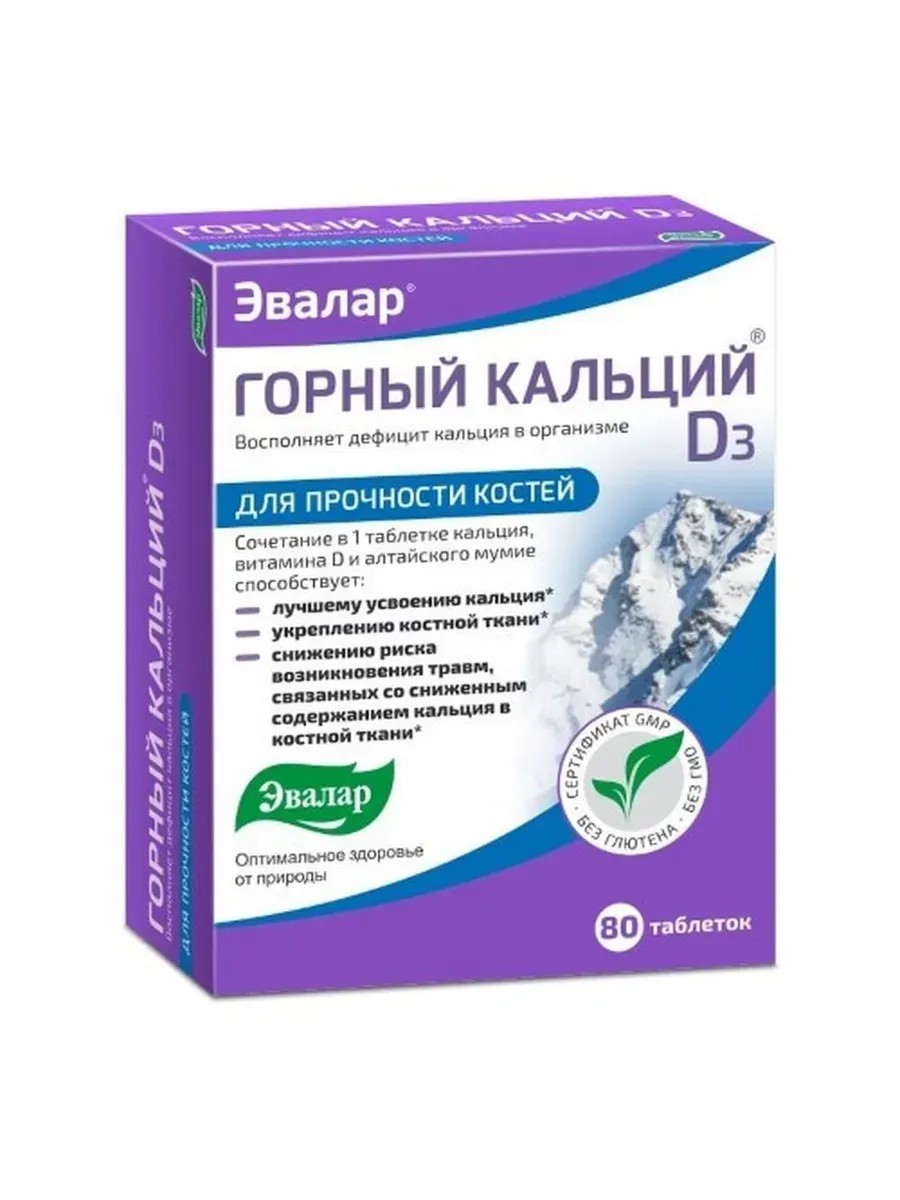 Mountain Calcium D3 Evalar is recommended for use: as a biologically active food supplement and an additional source of calcium and vitamin D; for the prevention and treatment of calcium and/or vitamin D3 deficiency; to ensure full growth and strengthening during the period of most intensive growth of bones, teeth, and nail plates in children from 12 years of age; as a preventative measure for osteoporosis (including for women during menopause and after menopause); for the restoration of musculoskeletal tissue in various injuries and fractures. Adults and children over 12 years of age take 2 tablets 2 times a day with meals.