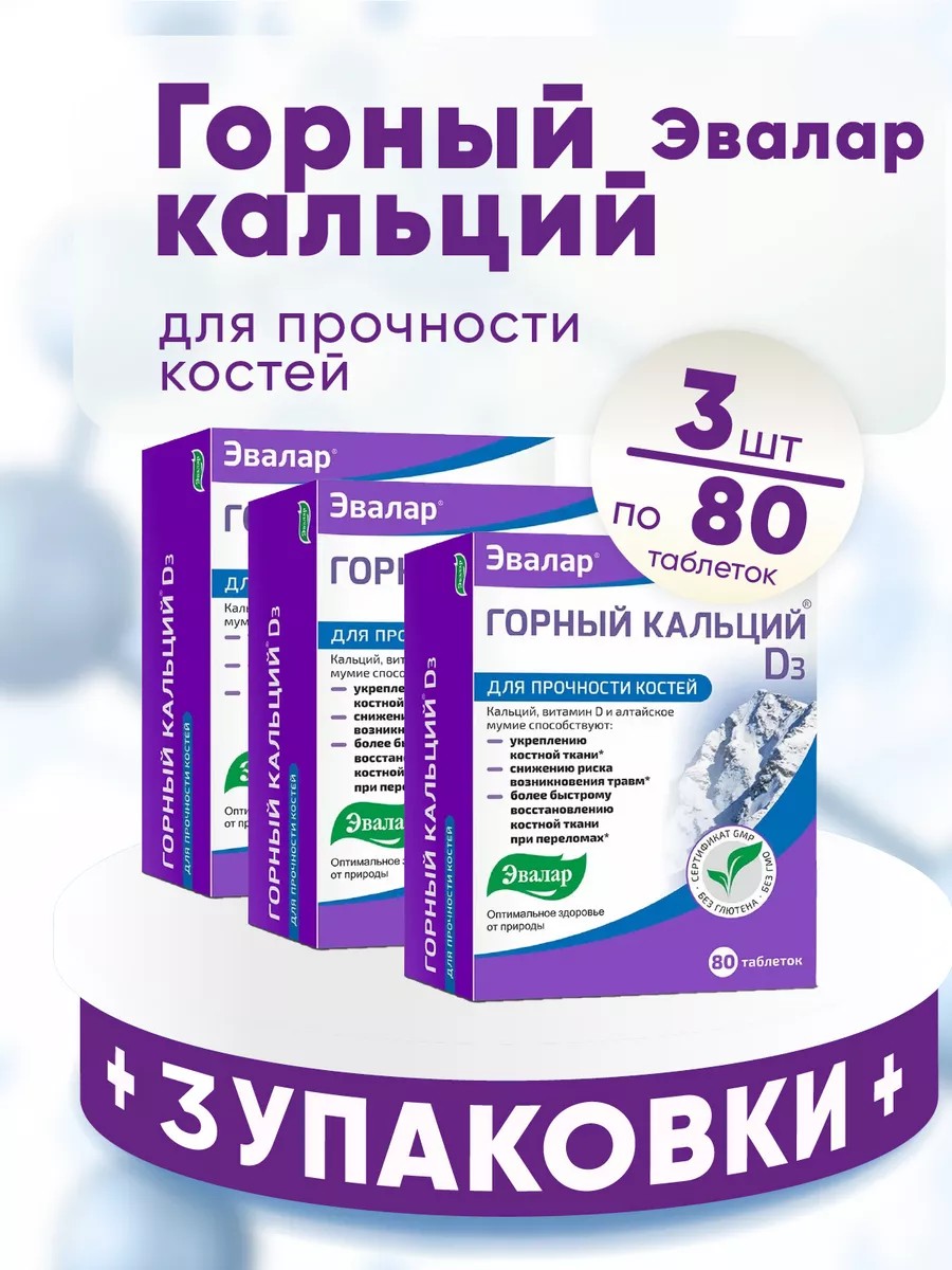 Эвалар Горный кальций D3 с мумие, 3 упаковки по 80 штук