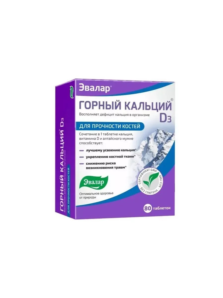 Эвалар Горный Кальций D3 с мумие, 80 таблеток