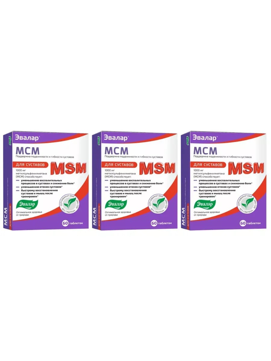 Эвалар МСМ для суставов, 60 таблеток по 0,65 г х 3 упаковки