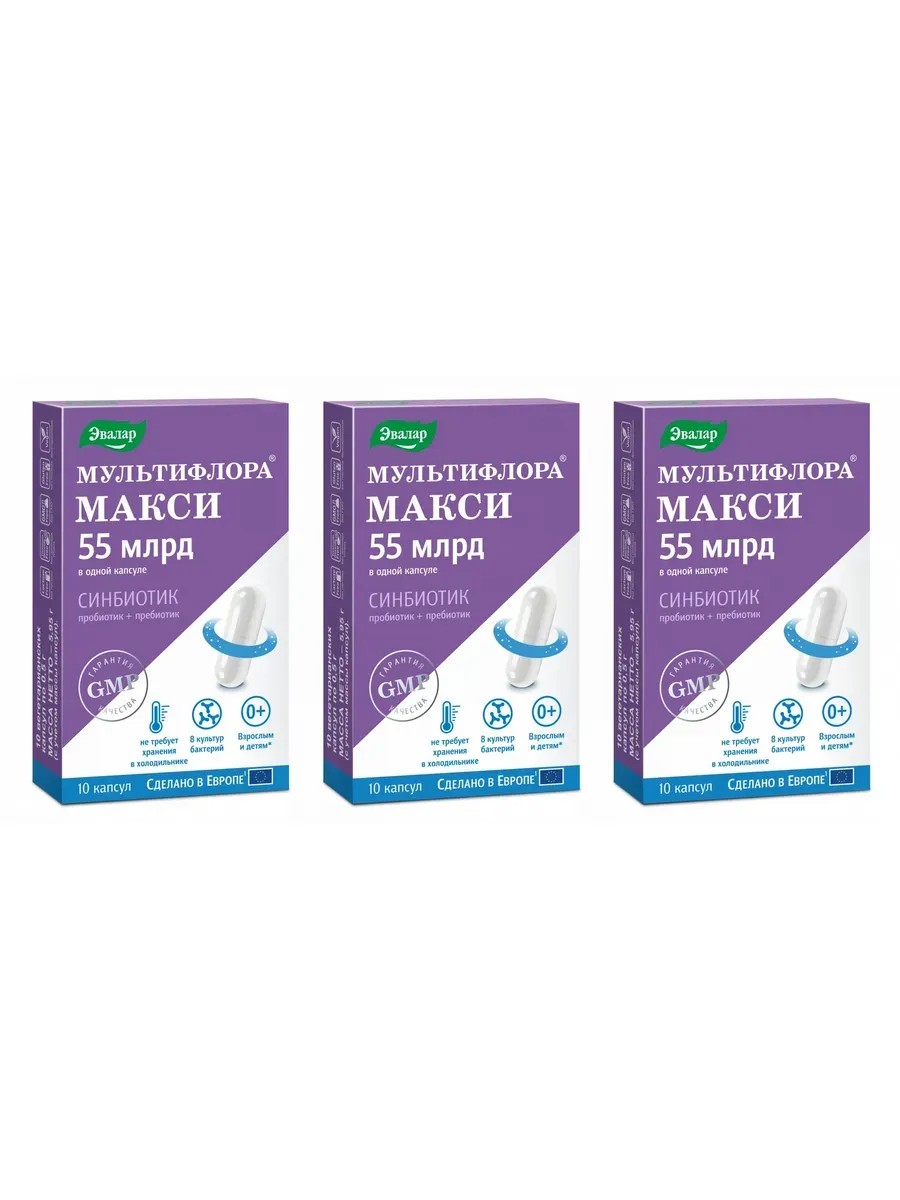 Эвалар Мультифлора Макси, пробиотик, 10 капсул (0,5г) х 3 уп