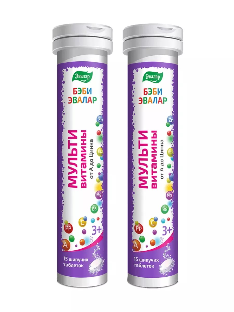 Бэби Эвалар мультивитамины от А до ZN 15 шт. таблетки шипучие массой 5,2 г – это биологически активная добавка к пище, вкусный и полезный шипучий напиток с ярким клубничным вкусом и мощным витаминно-минеральным составом. Бэби Эвалар мультивитамины от А до ZN способствует поддержанию организма ребенка в период адаптации к школе, детскому саду , восстановлению после перенесенных заболеваний, предупреждению дефицита витаминов, макро- и микроэлементов у детей, нормальному росту и развитию детского организма. Шипучая форма безопасна для желудка, так как имеет нейтральный рН, быстро растворяется в воде. Не содержит подсластителей (сахарозаменителей), искусственных красителей, ароматизаторов и консервантов, глютена, ГМО. Рекомендуется детям с 3-х лет принимать по 1 таблетке 1 раз в день. Перед применением рекомендуется проконсультироваться с врачом-педиатром.