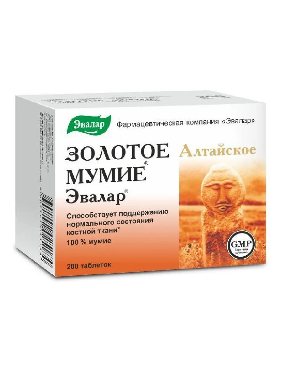 Эвалар Мумие Золотое алтайское Эвалар таблетки 0,2г 200шт -1 уп.