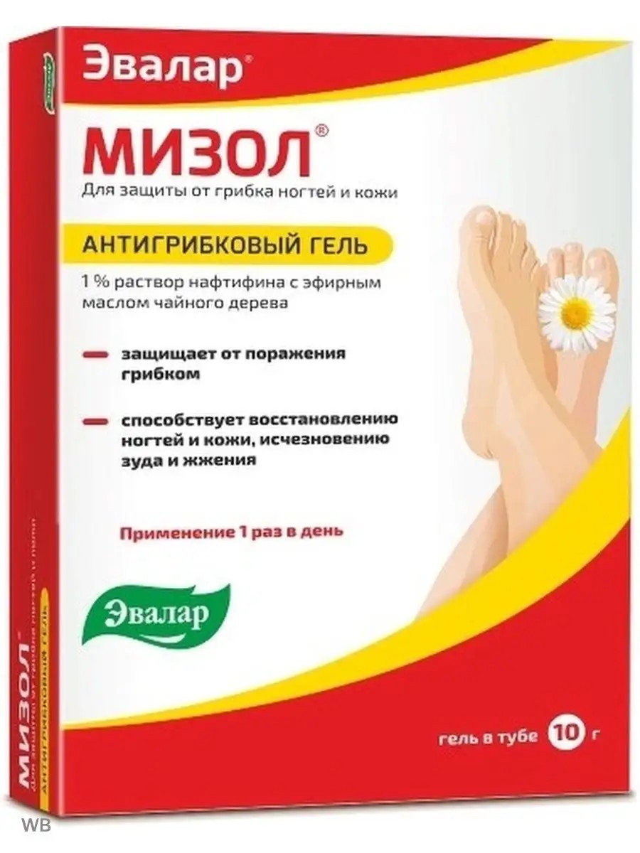 **Набор для защиты от грибка ногтей и кожи: гель в удобной тубе с кисточкой-аппликатором (1% раствор нафтифина с эфирным маслом чайного дерева), 30 одноразовых пилочек. Гель "Мизол", благодаря оптимально подобранной композиции: используется в качестве косметического средства для ухода за ногтями и кожей при грибковых поражениях, способствует восстановлению ногтей и кожи, исчезновению зуда и жжения, защищает от заражения грибком. Активные компоненты, входящие в состав "Мизола": Нафтифин - противогрибковый препарат из группы аллиламинов, используется в качестве препарата для наружного использования, обладает противовоспалительным действием, способствует быстрому исчезновению симптомов воспаления, особенно зуда. Масло чайного дерева - обладает выраженными антисептическими и антибактериальными свойствами. Благодаря наличию редкостного ингредиента – виридофлорена (его нет даже у таких бактерицидных растений, как эвкалипт, розмарин), антисептическое действие масла чайного дерева в 12 раз выше, нежели у фенола, и в 8 раз выше, чем у карбоновой кислоты. Кроме того, оно нивелирует побочные эффекты нафтифина, такие как сухость, покраснение и др.****Этиловый спирт - растворитель и антисептик, консервирующая, подсушивающая и охлаждающая добавка, обеспечивающая транспорт активных соединений в кожу, ускоряет высыхание геля на поверхности кожи или ногтевой пластины с образованием нелипкой пленки. Товар не является лекарственным средством.** **Могут быть противопоказания и следует предварительно проконсультироваться со специалистом. Состав: вода, глицерин растительный, гидроксипропилметилцеллюлоза, эфирное масло чайного дерева, нафтифина гидрохлорид, эуксил К300, спирт этиловый, триэтаноламин. Способ применения: гель наносится на чистые сухие ногти и кожу вокруг них (на поврежденные участки) тонким слоем 1 раз в день следующим образом: перед применением по возможности удалить поврежденные участки ногтя (на его поверхности) с помощью пилки для ногтей.