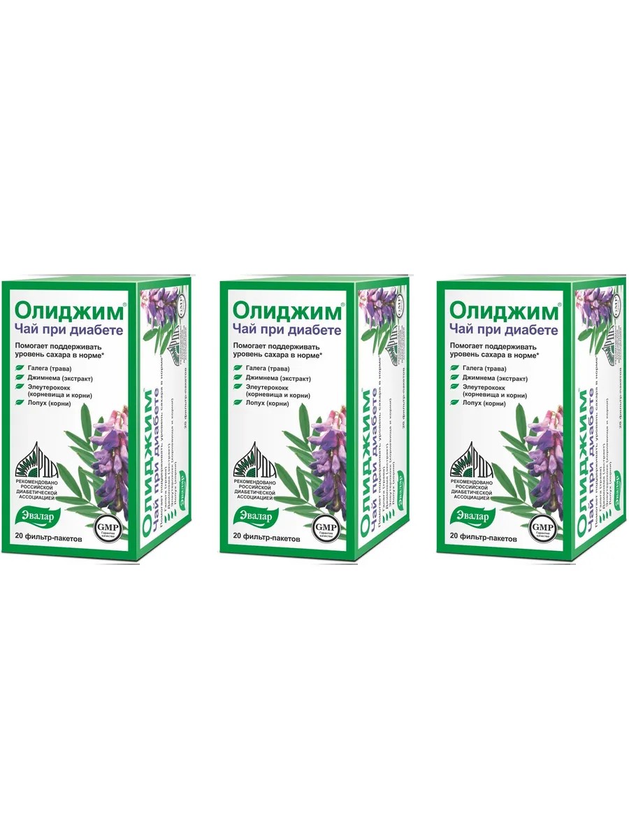 Эвалар Олиджим Чай при диабете, 20 фильтр-пакетов (2г) х 3 уп