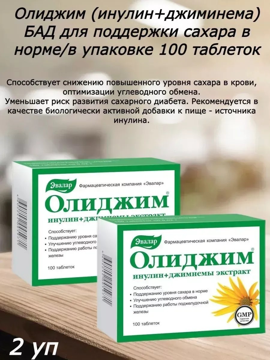 Олиджим способствует снижению уровня сахара в крови. Натуральный комплекс экстракта джимнемы и инулина обладает сахаропонижающим (гипогликемическим) действием и способствует: поддержанию в норме уровня сахара в крови, улучшению жирового и углеводного обмена в организме; поддержанию работы поджелудочной железы, выработке инсулина и повышению чувствительности клеток к нему; уменьшению всасывания сахаров в желудочно-кишечном тракте; снижению аппетита, уменьшению тяги к сладкому, поддержанию веса в норме; предотвращению возникновения осложнений при диабете. взрослым по 2 таблетки 2 раза в день во время еды. Продолжительность приема не менее 1 месяца. Рекомендуется регулярный прием с 5-дневным перерывом. РЕКОМЕНДАЦИИ ПО ПРИМЕНЕНИЮ: взрослым по 2 таблетки 2 раза в день во время еды. Продолжительность приема не менее 1 месяца. Рекомендуется регулярный прием с 5-дневным перерывом.