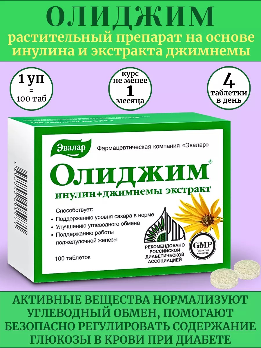 Эвалар Олиджим для поддержания уровня сахара при диабете 100таб*1уп