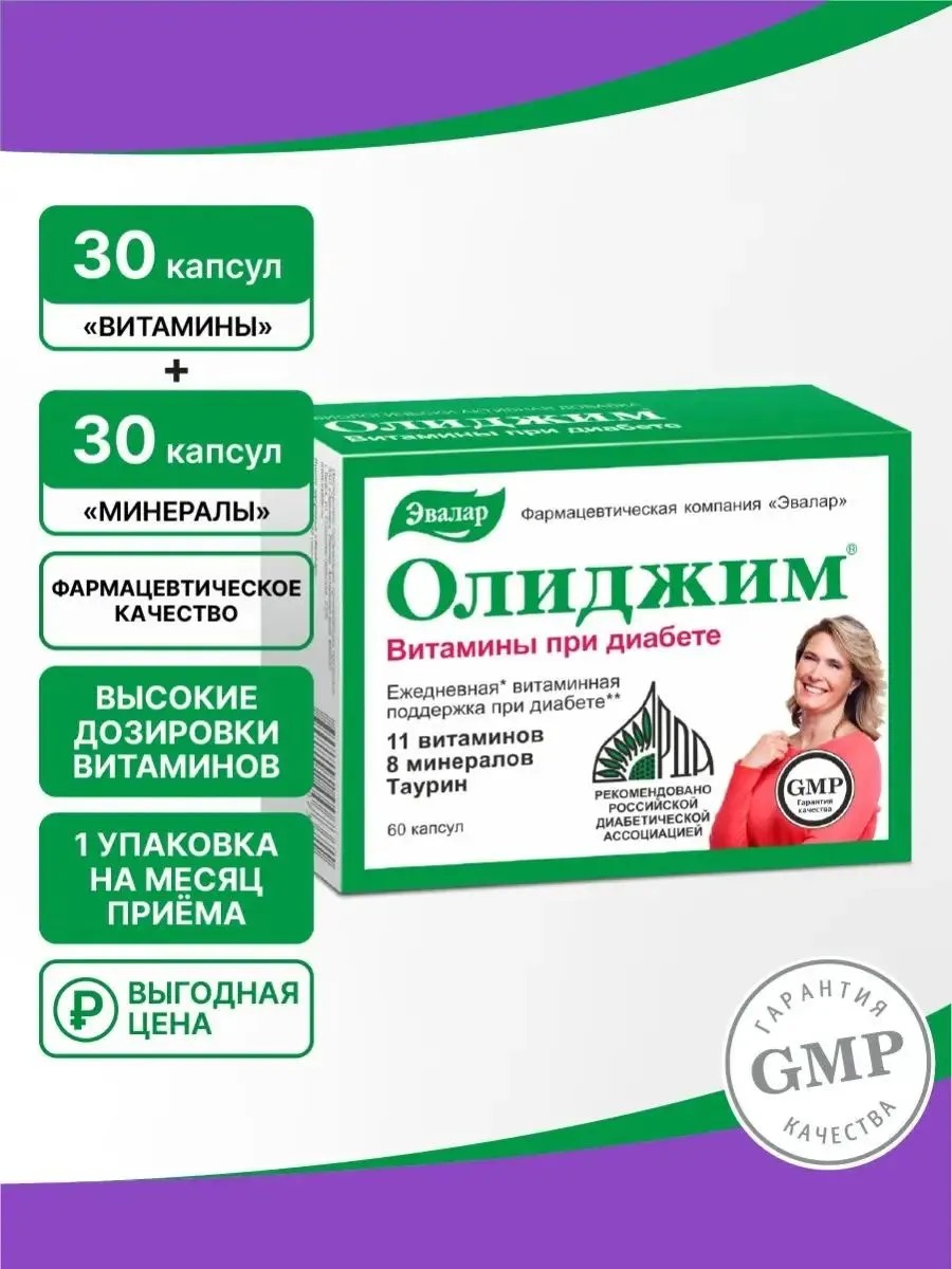 Эвалар Олиджим, при диабете, бад снижение сахара, 60 таблеток