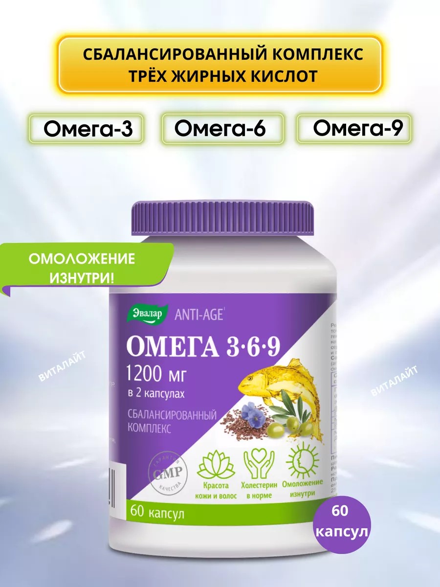 Эвалар Омега 3-6-9,ANTI-AGE,для молодости и красоты 60 капсул-1уп