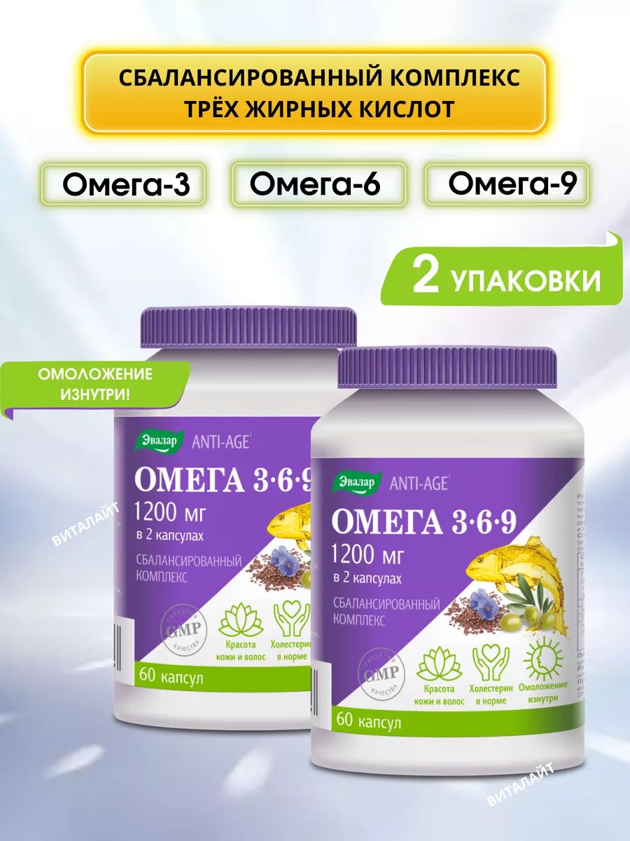 Эвалар Омега 3-6-9,ANTI-AGE,для молодости и красоты 60 капсул-2уп