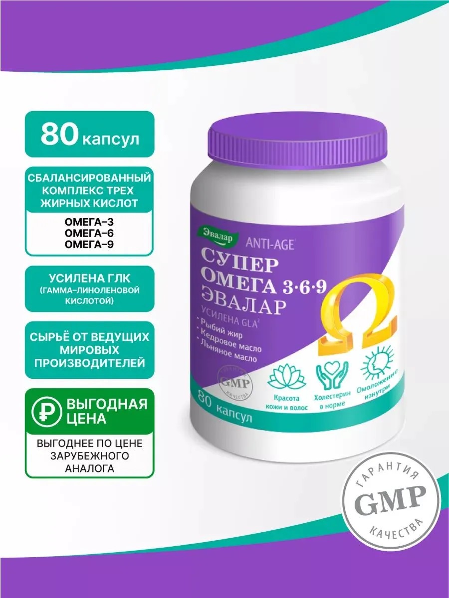 Эвалар Омега 3-6-9 рыбий жир для сердца, кожи и мозга