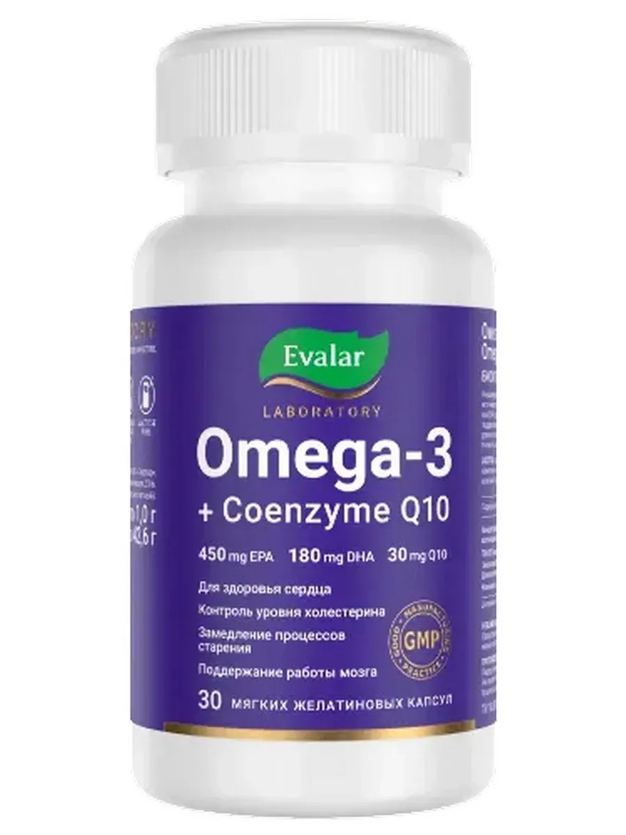 Омега-3 + Коэнзим Q10 представляет собой оптимальное сочетание питательных веществ, направленных на поддержание здоровья сердца и всего организма.Капсулы Омега-3 + Коэнзим Q10 удобно принимать: всего 1 капсула в день позволит вам поддержать здоровье сердца, мозга и глаз.Омега-3 + Коэнзим Q10 — это уникальная комбинация с доказанной эффективностью, которая:•способствует поддержанию здоровья сердца и сосудов;•позволяет контролировать уровень холестерина в организме;•замедляет процессы старения;•оказывает положительное влияние на здоровье мозга и его когнитивные функции;•является частью антиоксидантной защиты организма.