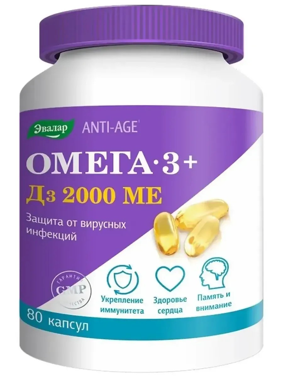Эвалар Омега-3 + Д3 2000 МЕ, капсулы №80 по 1,0 г