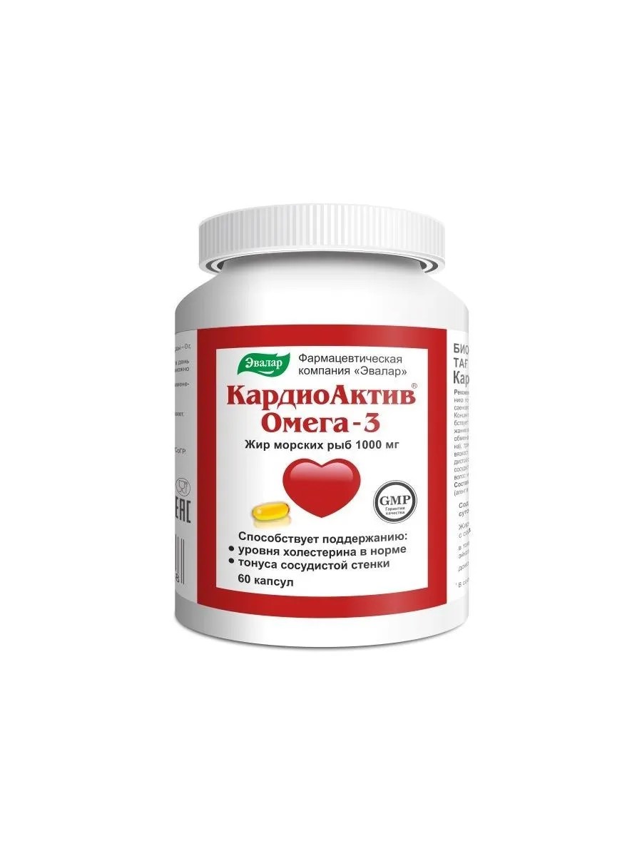 кардиоактив омега-3 n60 капс по 1г. дополнительный источник полиненасыщенных жирных кислот омега-3. в качестве биологически активной добавки к пище. жир морских рыб, компоненты капсулы (желатин, глицерин). для реализации населению через аптечную сеть и специализированные магазины, отделы торговой сети (далее согласно приложению)