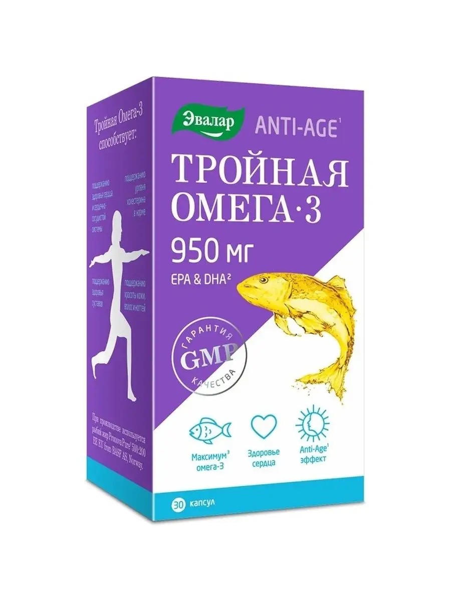 Эвалар Омега-3 тройная 950мг капс. 1300мг 30 шт (БАД)