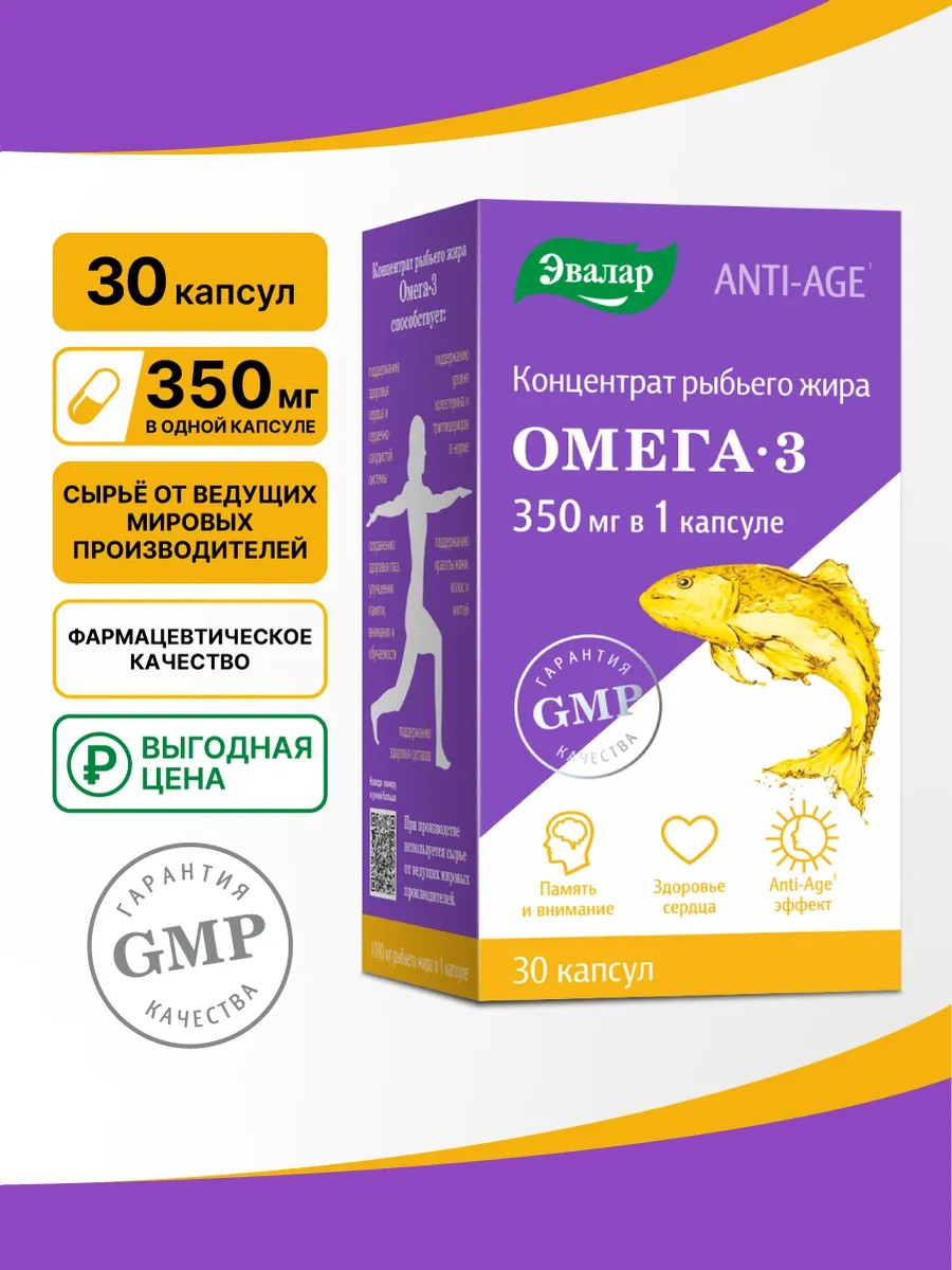 Омега-3 Эвалар — рыбий жир премиум-класса для сердца, мозга и красоты. Капсулы с омега 3 (350 мг) для взрослых, мужчин и женщин.