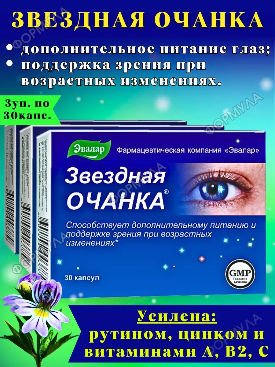 Звездная очанка Эвалар – натуральная поддержка зрения, здоровье глаз в каждой капсуле!