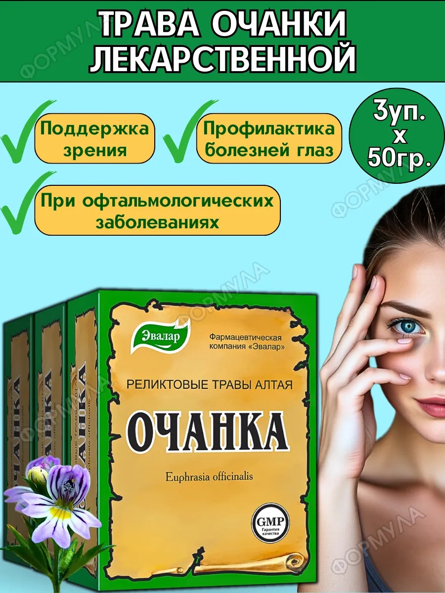 Натуральная очанка лекарственная Эвалар – ваш надежный союзник в поддержке здоровья глаз и зрения. Это растение, известное своими целебными свойствами, помогает снизить напряжение, улучшает кровообращение в глазных сосудах и предотвращает возрастные изменения.