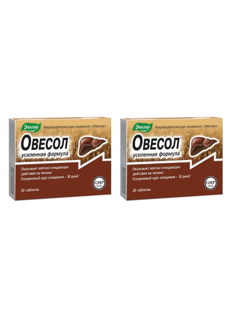 Эвалар Овесол Усиленная формула для печени, 20 таб (0,58г) х 2 уп