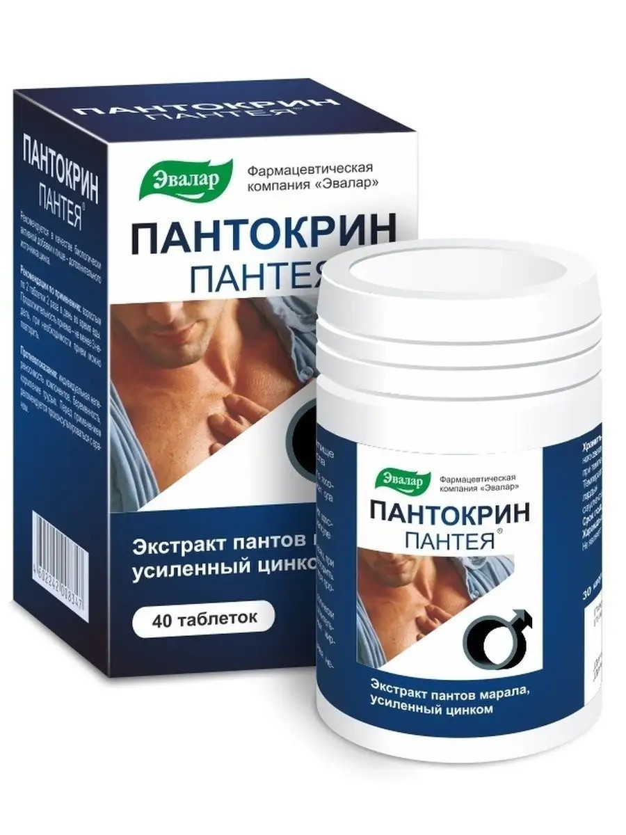 Пантокрин Пантея - комплекс на основе экстракта пантов марала, содержащий широкий спектр биологически активных веществ и усиленный цинком для активной жизни в любом возрасте. Панты (молодые рога марала) - ценное природное сырье. Исключительные свойства пантов не случайны, ведь в период их роста организм животного фактически производит до 25 кг костной ткани. Таких темпов роста не знает организм ни одного другого животного. Это состояние требует значительного напряжения всех функциональных систем организма и, соответственно, высоких концентраций веществ регулирующей и защитной природы. Таким образом, марал является природным источником (донором) сырья, непревзойденного по своей уникальной биологической способности оздоравливать организм человека. Способ применения: Взрослым – по 2 таблетки 2 раза в день во время еды. Продолжительность приема – не менее 3 недель, при необходимости прием можно повторить.