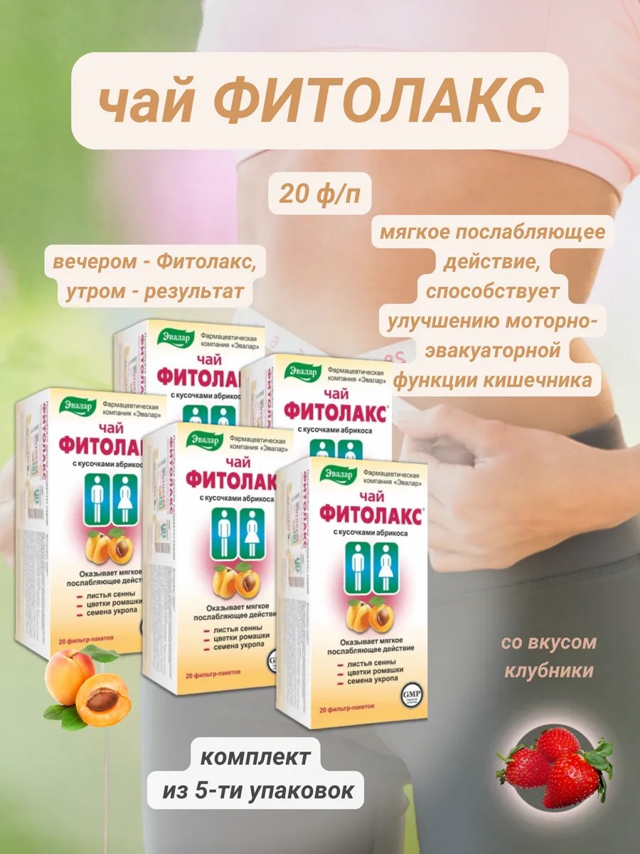 | Полное наименование товара | Эвалар Фитолакс чай с кусочками абрикоса, 20 фильтр-пакетов |
