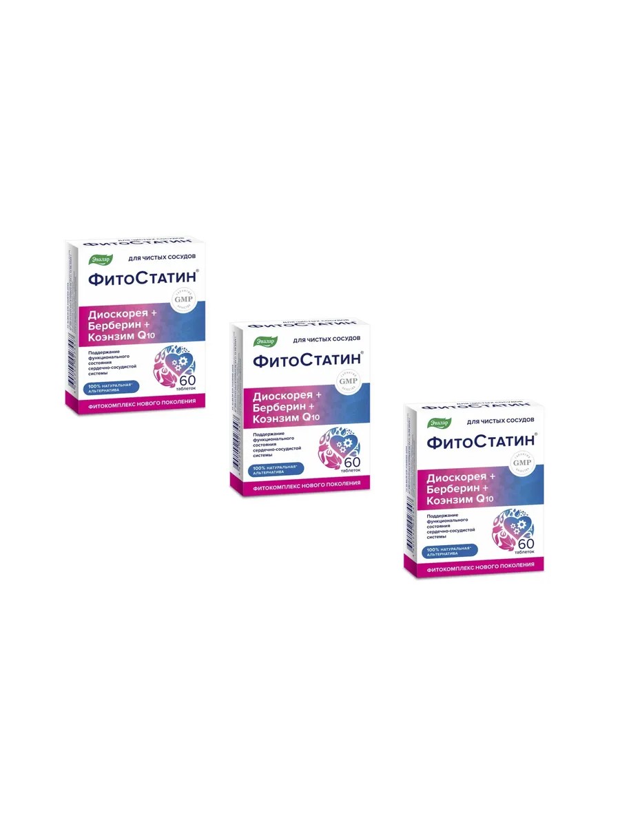 Фитостатин N60 таблетки п/о по 0,55г - 3 упаковки