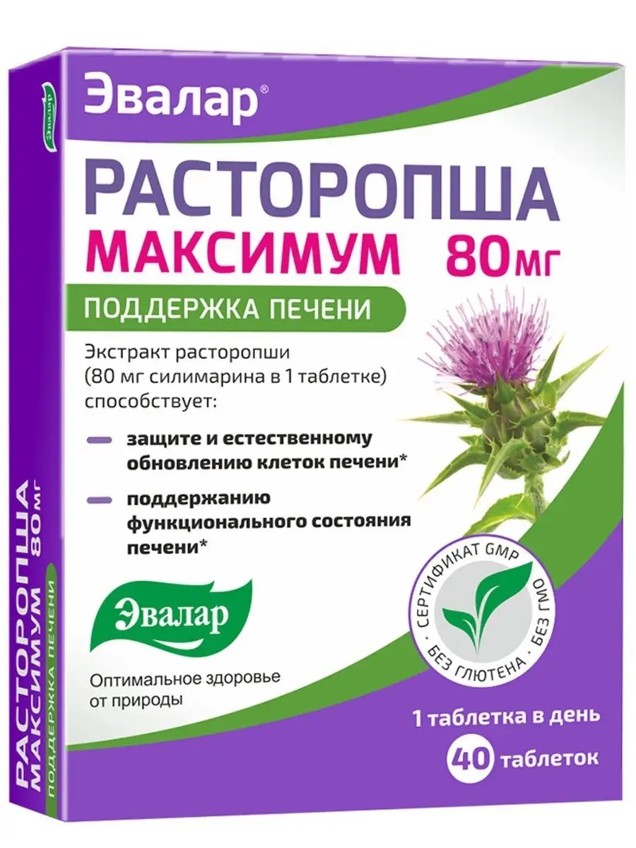 Эвалар Расторопша для печени максимум 40 таблеток