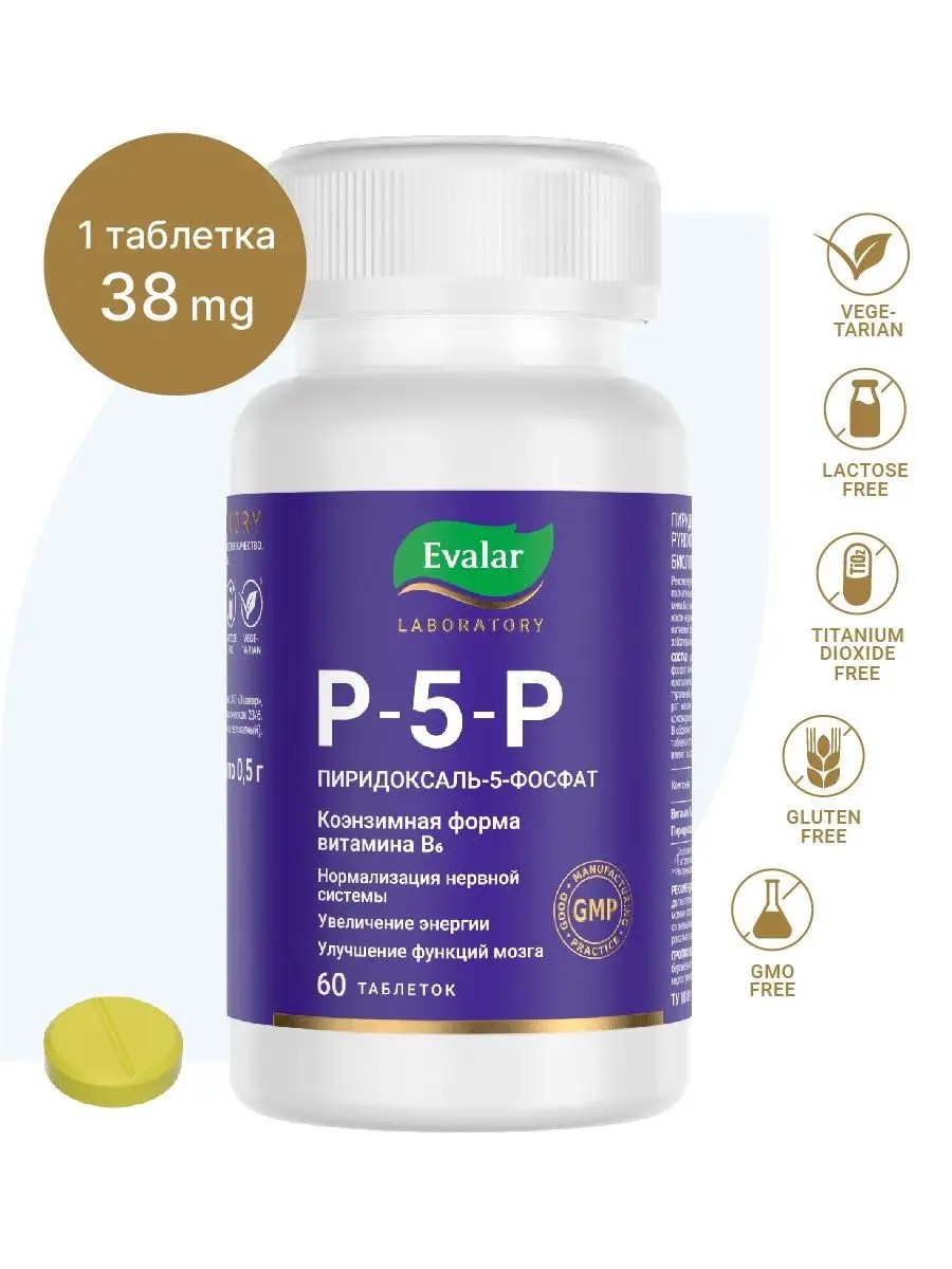 Эвалар Пиридоксаль 5 фосфат (P-5-P), витамин б6 для мозга, 60 табл