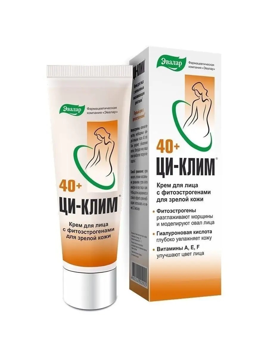 Ци-Клим крем для лица с фитоэстрогенами для зрелой кожи - фитоэстрогены,гиалуроновая кислота,витамин А,Е,F для замедления гормонального старения кожи лица