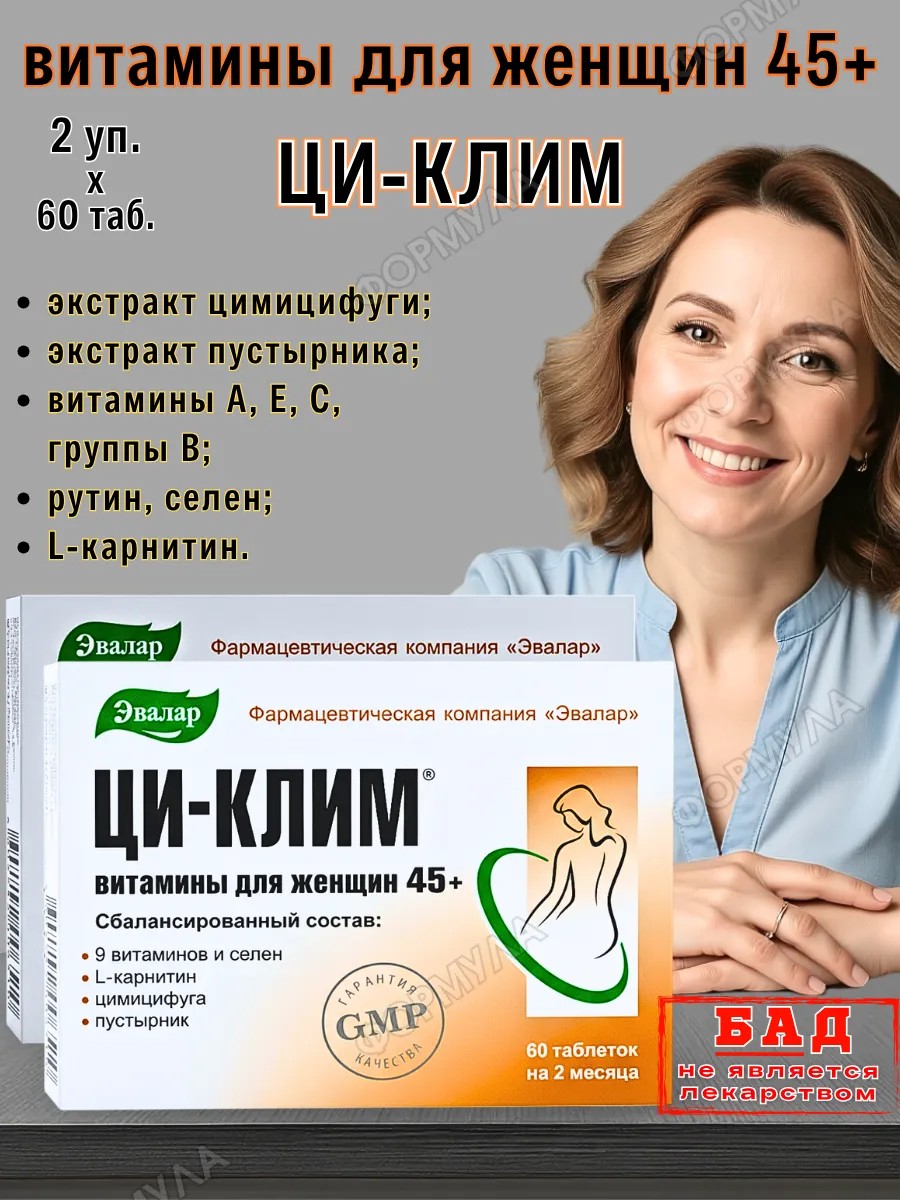 Эвалар Ци-клим витамины 45+ при климаксе и приливах 2шт