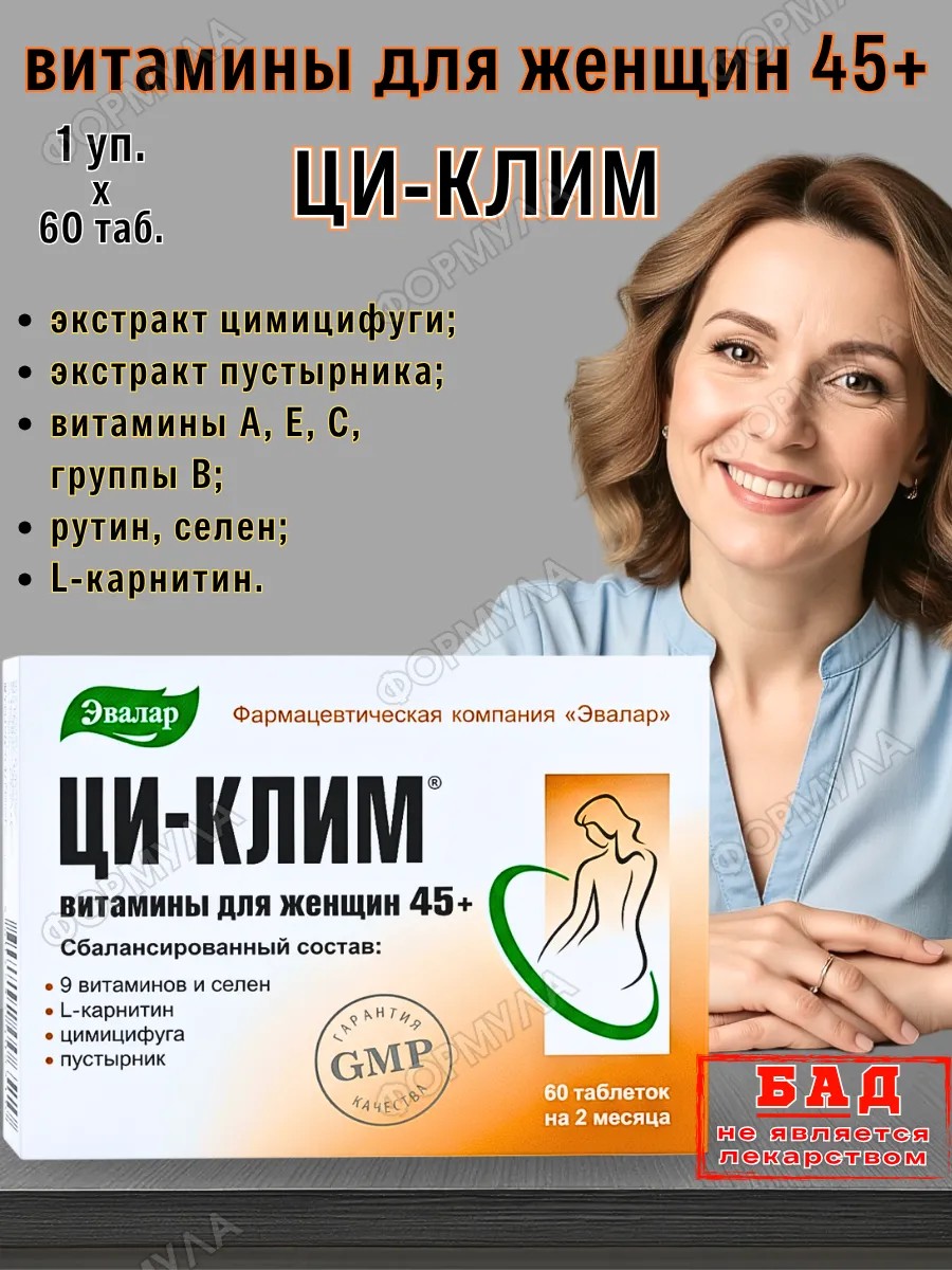 Эвалар Ци-клим витамины 45+ при климаксе и приливах