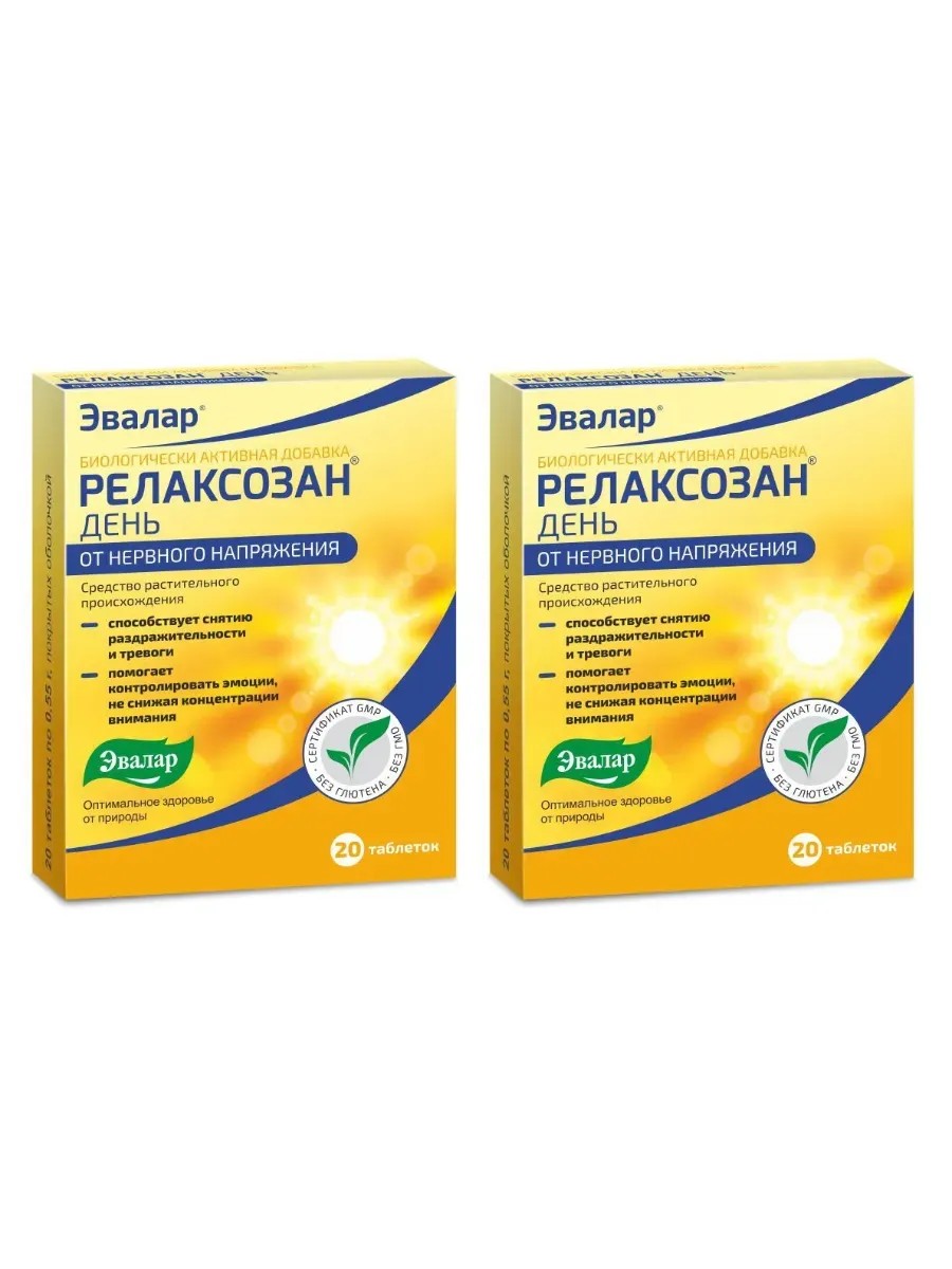 Эвалар Релаксозан День от нерв. напряжения, 20 таб (0,55г) х 2 уп