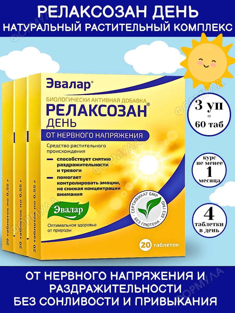 Эвалар Релаксозан День Комплекс для нервной системы 20таб*3уп