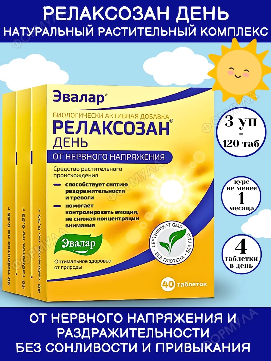 Эвалар Релаксозан День Комплекс для нервной системы 40таб*3уп