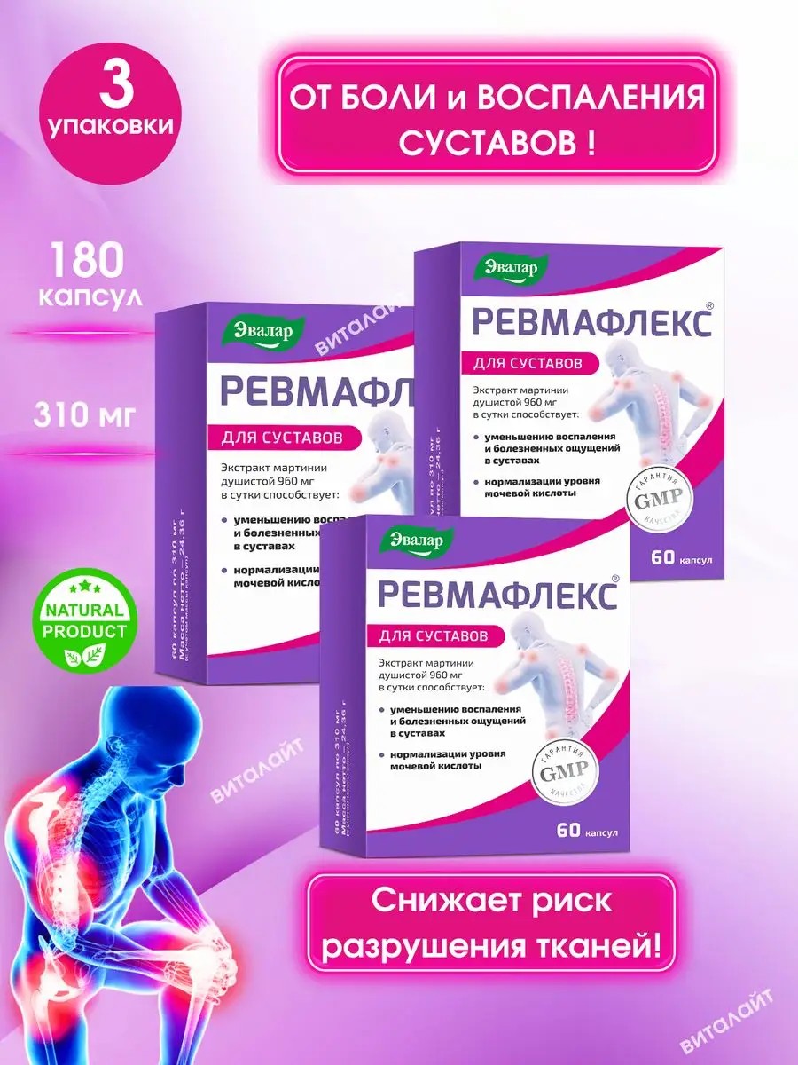 Эвалар Ревмафлекс капсулы 60 шт, 310мг, для суставов-3уп