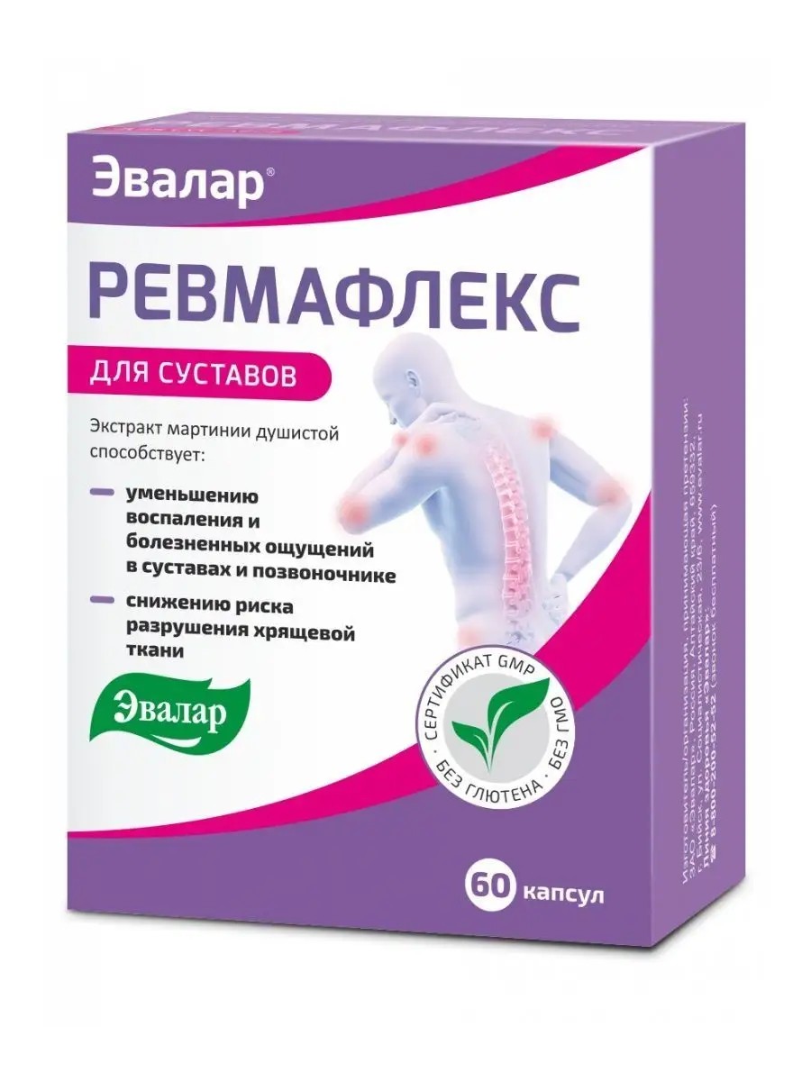 Принято считать, что проблемы с суставами - это неотъемлемый признак возраста. Когда суставы скованы, хрустят или болят, мы списываем все на возраст, полагая, что с этим нужно просто смириться.Но не всегда это так: травмы, лишний вес и многие другие факторы могут влиять на здоровье суставов в любом возрасте.При обращении к специалисту, чаще всего назначаются синтетические препараты (НПВС), которые имеют много побочных эффектов и могут оказывать негативное влияние на слизистую желудка вплоть до желудочно-кишечного кровотечения или перфорации стенок желудка.Также, при проблемах с суставами популярностью пользуются хондропротекторы. Но, по последним данным1 по нехирургическому лечению остеоартрита коленных суставов среди основных выводов для специалистов указывает, что хондропротекторы (глюкозамин и хондроитин) «не предназначены» для всех пациентов и результат их применения «не определен» у любых пациентов, которым необходимо ослабление симптомов при проблемах суставами. Дело в том, что основной целью хондропротекторов является предотвращение разрушения и восстановление хрящевой ткани в суставах, но не всегда проблемы вызваны именно этим нарушением, причина может быть в воспалении, при котором хондропротекторы могут оказаться бессильными.Поэтому актуальным является поиск альтернативных средств с комбинированным механизмом действия для поддержания здоровья суставов, таких, как мартиния душистая.Ревмафлекс - растительный препарат на основе мартинии душистой для здоровья суставов, который снимает воспаление и боль, оказывает хондропротекторное действие, при этом не влияет на слизистую желудка.Мартиния душистая или дьявольский коготь (Harpagopbytum procumbens (Burcb.)DS) - растение из семейства кунжутовых - Pedaliaceae. Произрастают в Южной, Восточной и Юго-Западной Африке. Промышленные заросли - в районах, граничащих с пустыней Калахари, и степных районах Намибии.Мартиния душистая обладает способностью уменьшать и прекращать боли при воспалительных процессах, помогает при ревматизме и подагре. Снижает припухлость и боль в воспаленных суставах, облегчает их подвижность. Применение Мартинии оказывает слабительное и мягкое успокаивающее действие. Применяют при подагре, миалгии, артритах, люмбаго.Кроме того, растение способствует снижению в сыворотке крови уровня холестерина и мочевой кислоты, обладает противомикробной активностью. Имеются данные о применении мартинии при лечении воспалительных заболеваний желчного пузыря и органов мочеполовой системы.Ревмафлекс на основе мартинии душистой от компании Эвалар способствует:-улучшению подвижности и гибкости суставов и позвоночника;-уменьшению воспаления и болезненных ощущений в суставах и позвоночнике;-снижению риска разрушения хрящевой ткани;-нормализации уровня мочевой кислоты;-снижению потребности в применении нестероидных противовоспалительных средств ПРИМЕНЕНИЕ: Мартинии оказывает слабительное и мягкое успокаивающее действие. Применяют при подагре, миалгии, артритах, люмбаго.Кроме того, растение способствует снижению в сыворотке крови уровня холестерина и мочевой кислоты, обладает противомикробной активностью. Имеются данные о применении мартинии при лечении воспалительных заболеваний желчного пузыря и органов мочеполовой системы. Ревмафлекс на основе марти