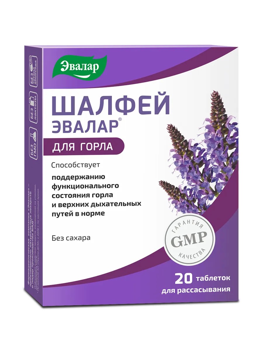 Эвалар Шалфей, для горла от боли, 20таблеток