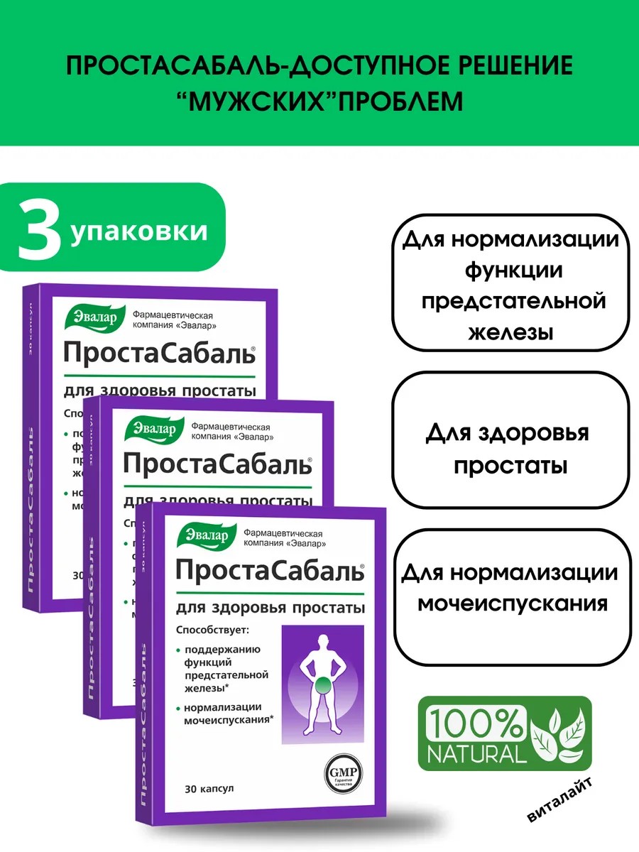 Эвалар ПростаСабаль, капсулы для мужского здоровья 30 шт-3уп