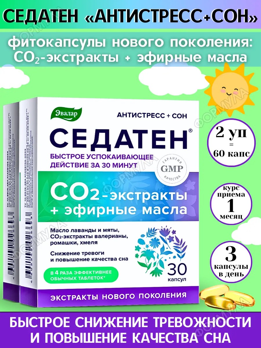 Эвалар Седатен "Антистресс + Сон" успокаивающий комплекс 30капс*2уп