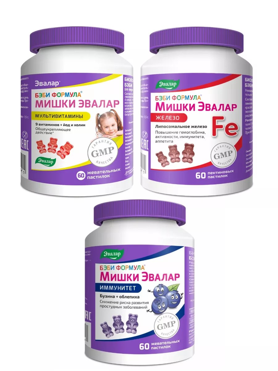 БЭБИ ФОРМУЛА МИШКИ МУЛЬТИВИТАМИНЫ N60 ЖЕВ ПАСТИЛКИ ПО 2,0+БЭБИ ФОРМУЛА МИШКИ ЖЕЛЕЗО N60 ЖЕВ ПАСТИЛКИ ПО 2,5Г+БЭБИ ФОРМУЛА МИШКИ ИММУНИТЕТ N60 ЖЕВ ПАСТИЛКИ ПО 2,5Г