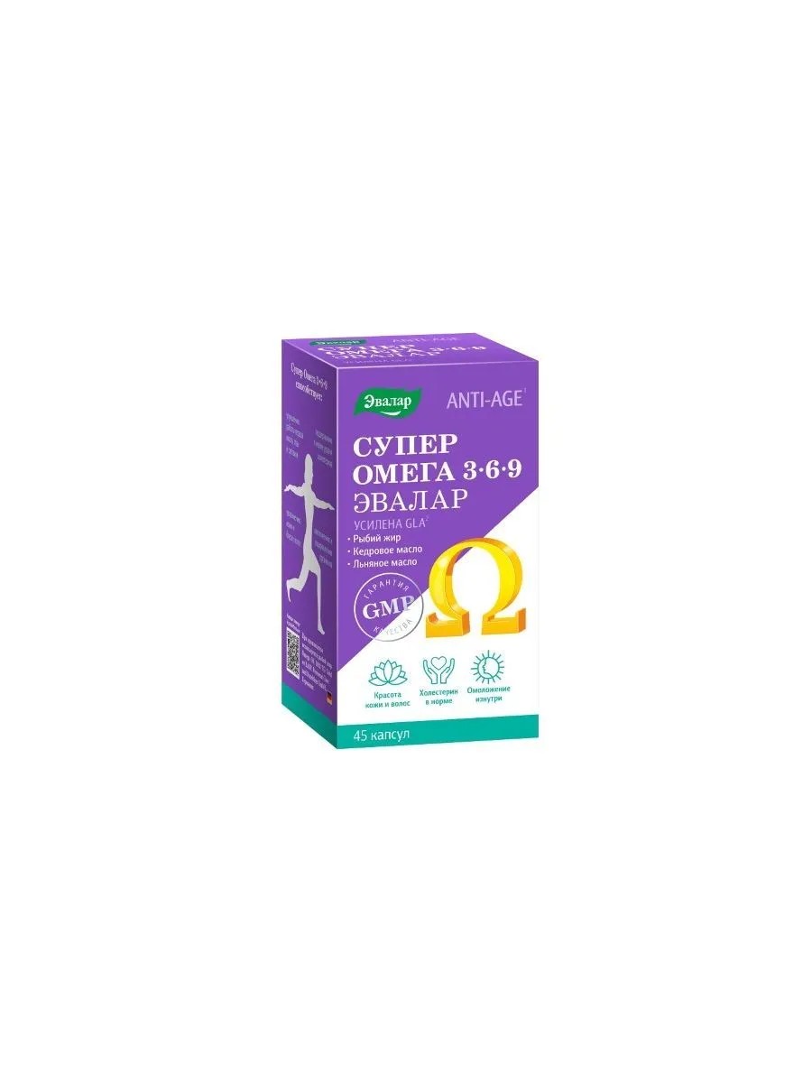 супер омега 3-6-9 n45 капс по 1,2г. источник пнжк омега-3 (экзопентаеновой, докозагексаеновой и альфа-линоленовой кислот), пнжк омега-6 (линолевой и гамма-линоленовой кислот), содержит омега-9 (олеиновую кисоту). в качестве биологически активной добавки к пище. компоненты капсулы (желатин, глицерин), льняное масло, рыбий жир, кедровое масло, смесь токоферолов (антиокислитель). источник полиненасыщенных жирных кислот (пнжк) омега-3 (эйкозапентаеновой, докозагексаеновой и альфа-линоленовой кислот), пнжк омега-6 (линолевой и гамма-линоленовой кислот), содержащей омега-9 (олеиновую кислоту).