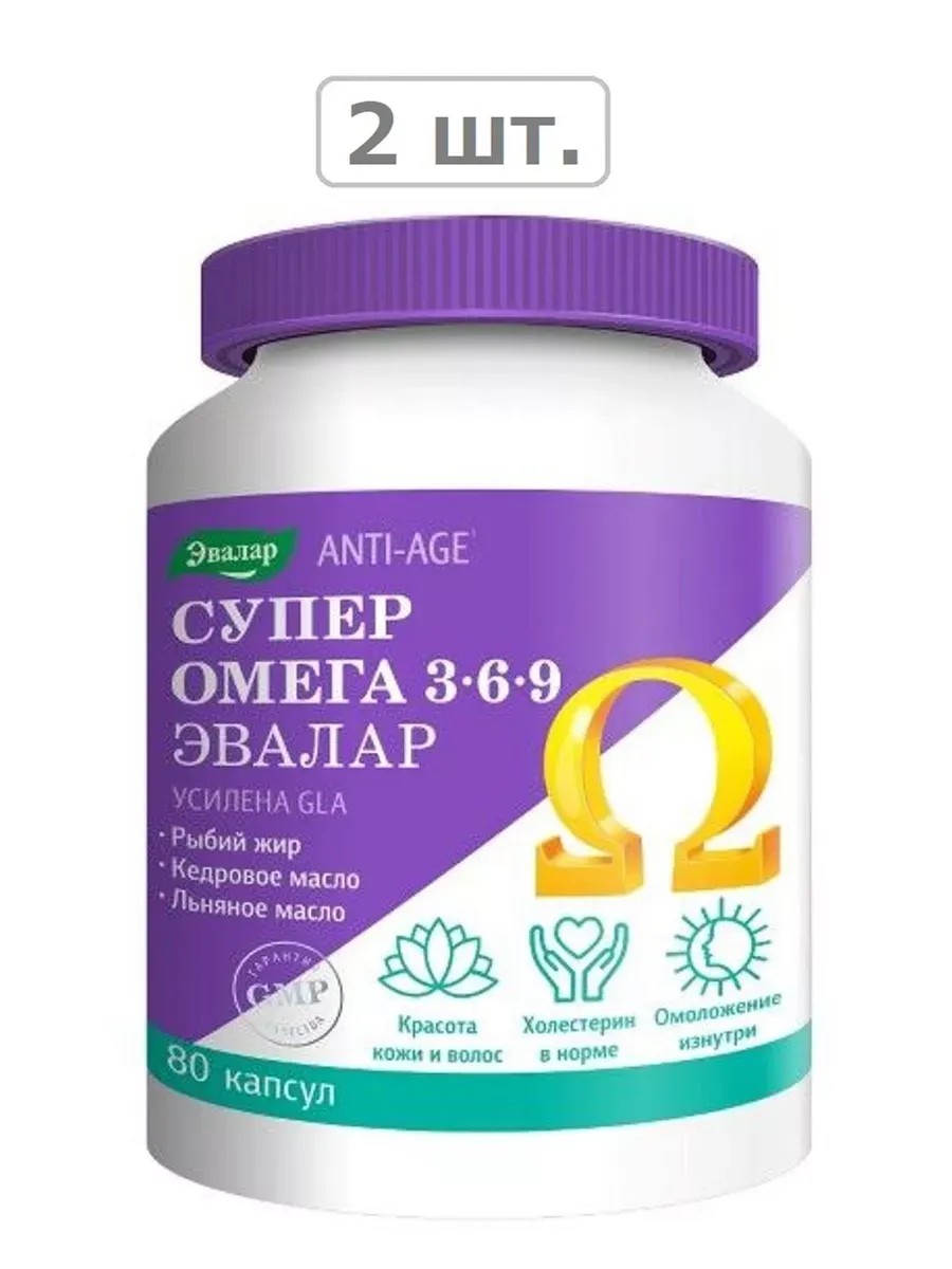 Эвалар супер омега 3-6-9 n80 капс по 1,2г-2шт