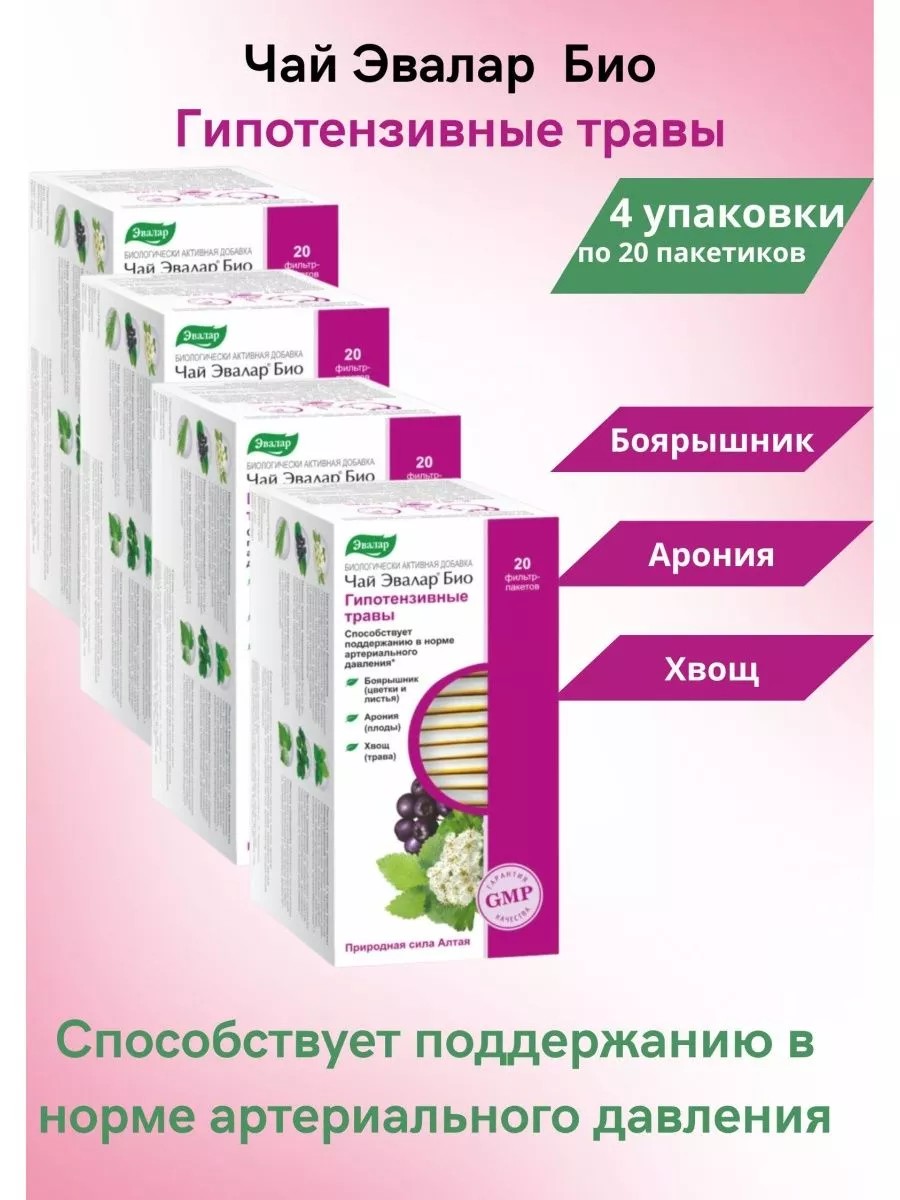 | Комплектация | Чай Эвалар Био гипотензивные травы 20пак-4уп |