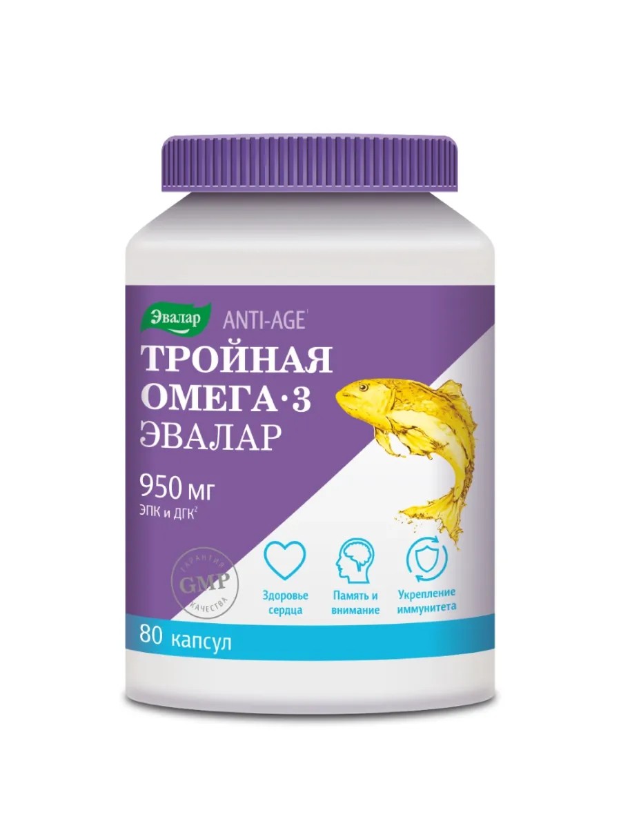 Эвалар Тройная омега 3 950 мг 80 шт. капсулы массой 1300 мг