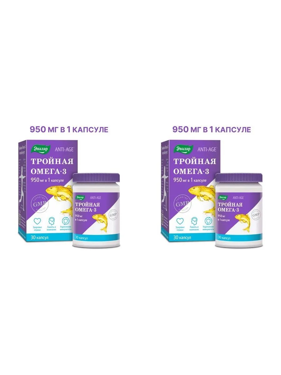 Эвалар тройная омега 3 950 мг n30 капс по 1300мг - 2шт