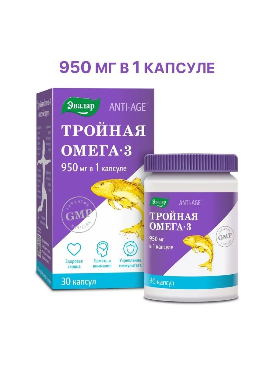 Эвалар тройная омега 3 950 мг n30 капс по 1300мг